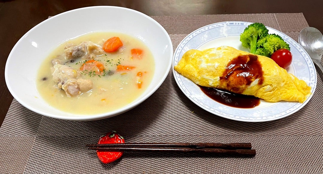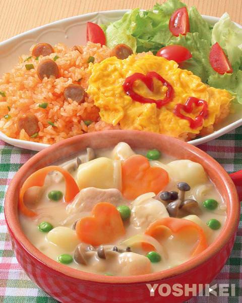 チキンときのこのクリームシチュー ふわふわたまごのオムライス 食材宅配のヨシケイ 夕食ネット レシピ・メニュー・献立付き。