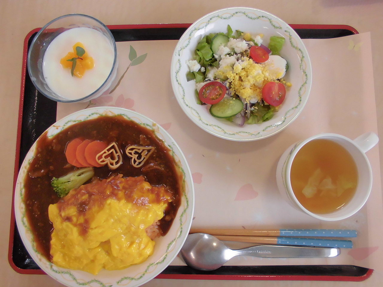 ビーフシチューオムライス トマトのシーザーサラダ 食材宅配のヨシケイ 夕食ネット レシピ・メニュー・献立付き。