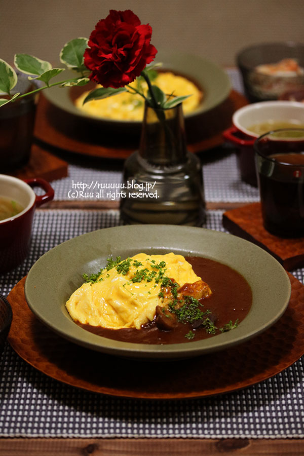 ラブラブオムライスとビーフシチューの献立献立 レシピ日記 〜初めての主婦生活。