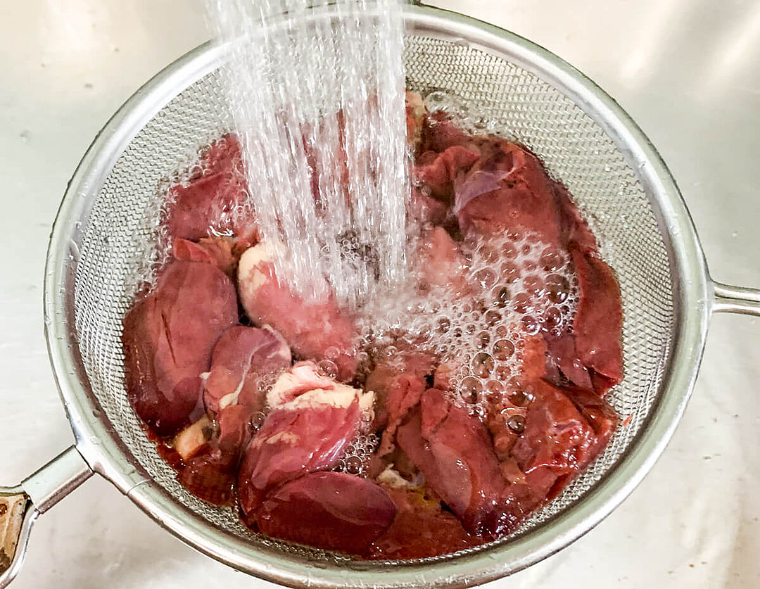 65℃ 鶏レバーの臭み抜き 下処理比較実験。