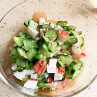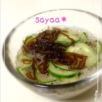 きゅうりとめかぶカニカマの酢麺つゆかけ。