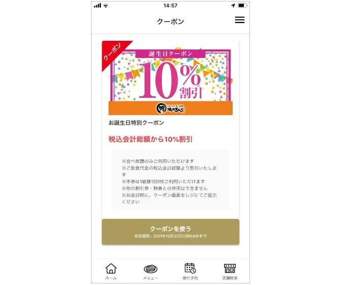 誕生日特典 焼肉きんぐ「10%OFFクーポン」プレゼント!anncierge。