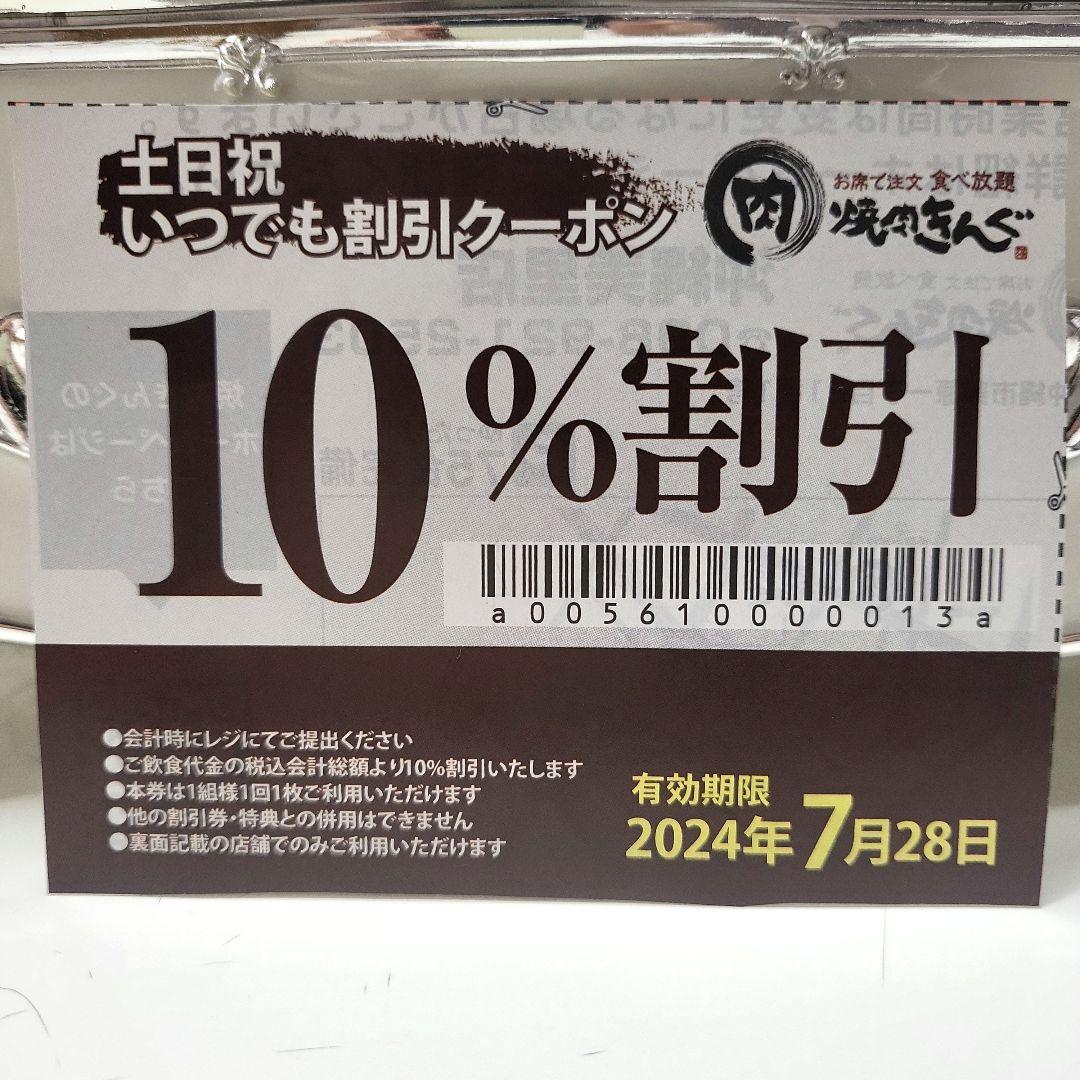 焼き肉きんぐ 土日祝日 いつでも 10 %割引券 - メルカリ。