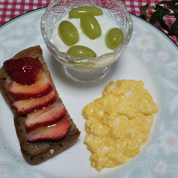 本日の朝食はトースト&塩麹でスクランブルエッグです🎵柘榴❣️。
