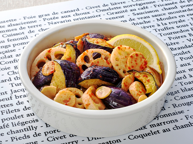 なすとれんこんのガーリックオイル揚げびたし~パプリカ風味~。