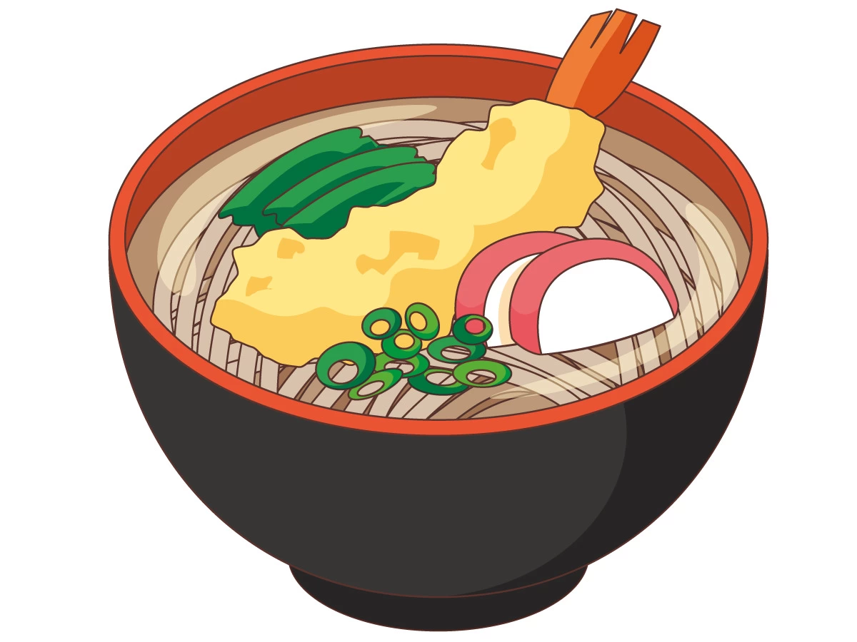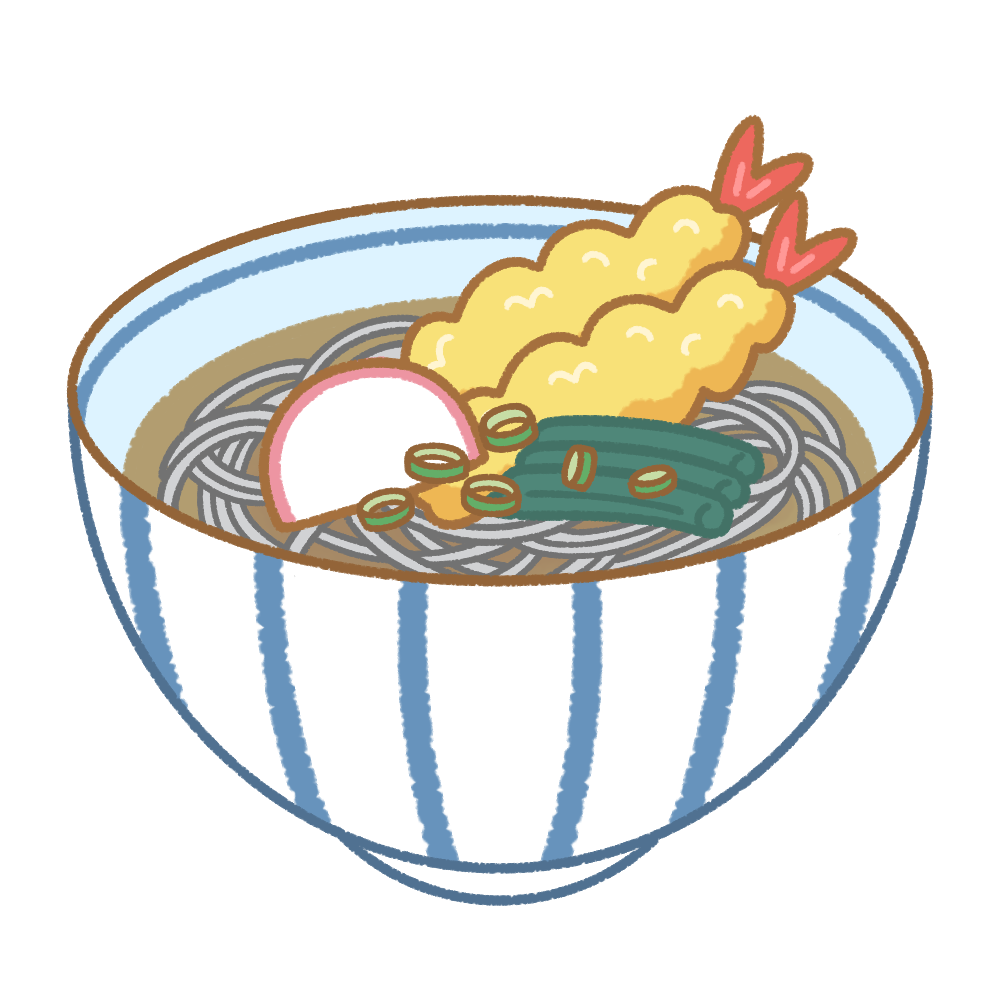 年越し蕎麦 天ぷらイラストレイン🚂 - イラスト無料素材。