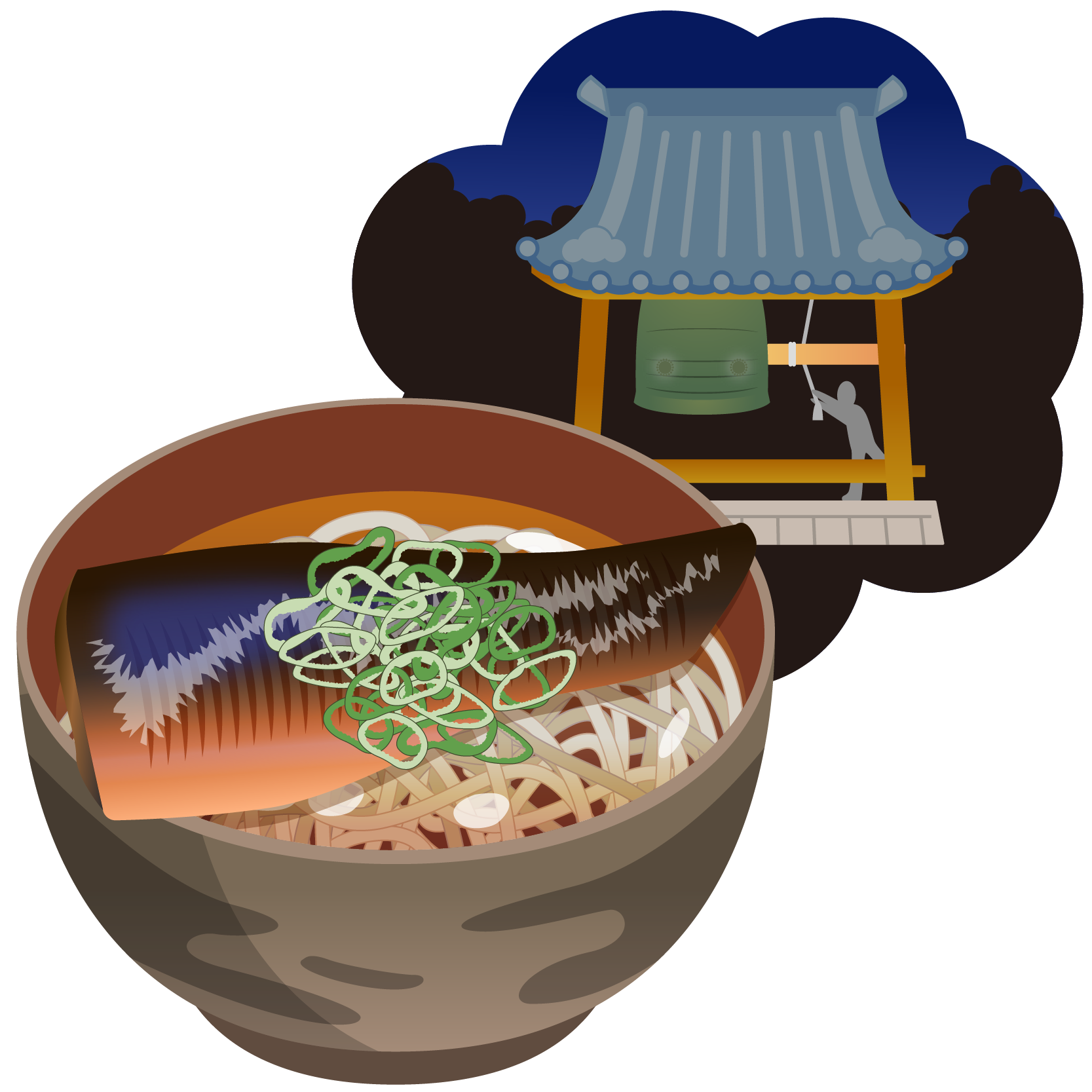 商用フリー・無料イラスト_年越しそば 蕎麦 にしんそば 除夜の鐘_012 - 商用OK!フリー素材集「ナイスなイラスト」。