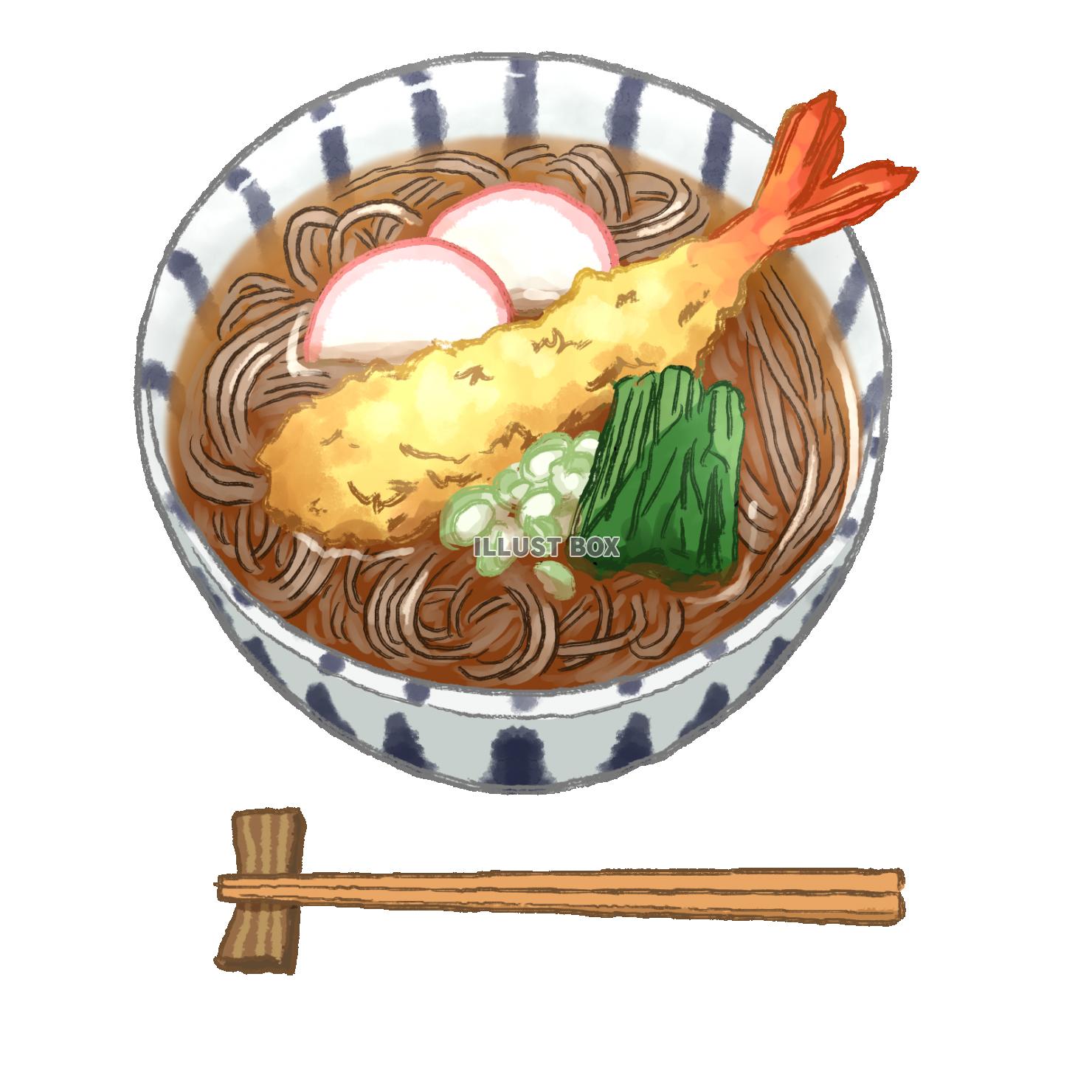 年越しそばと海老天のイラストイラスト・フリー素材なら「シンテリ」。