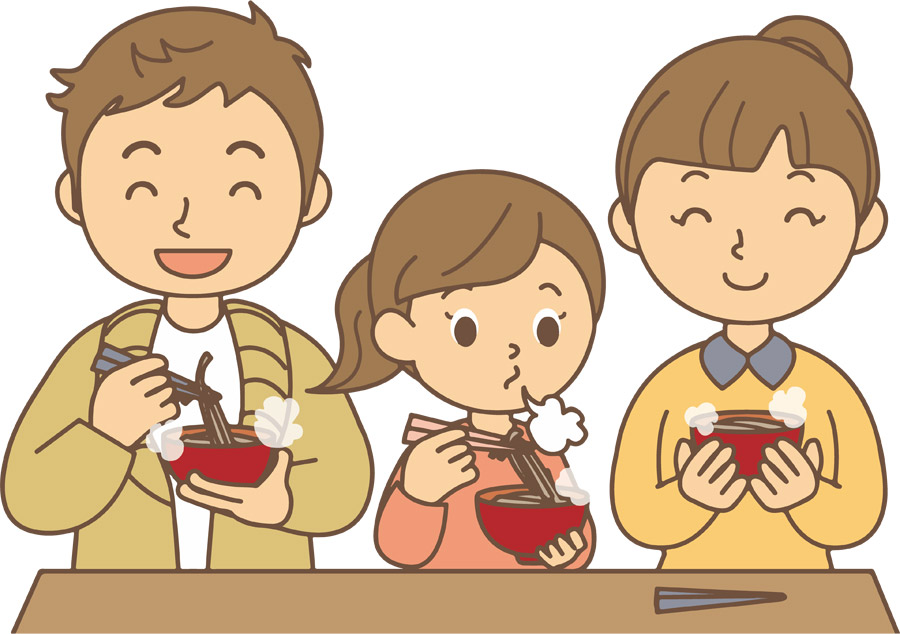 年越しそばを食べる家族のイラストかわいいフリー素材集 いらすとや。