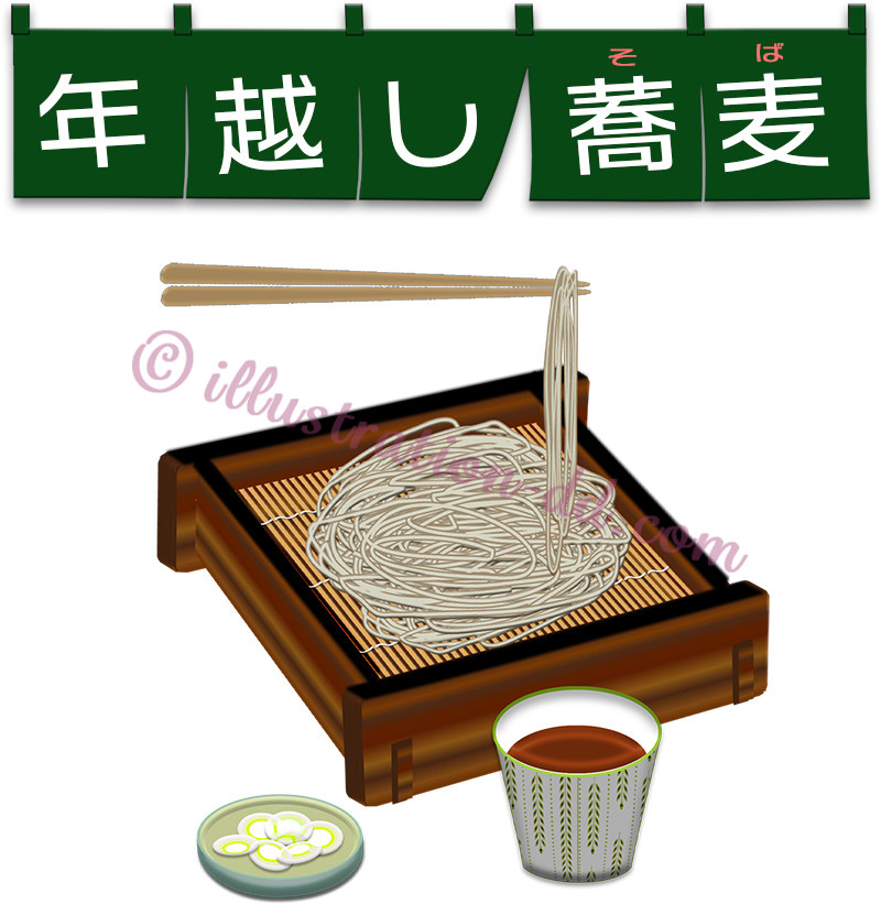 12月のイラストNo.001『大晦日の年越しそば』 無料のフリー素材集 花鳥風月。