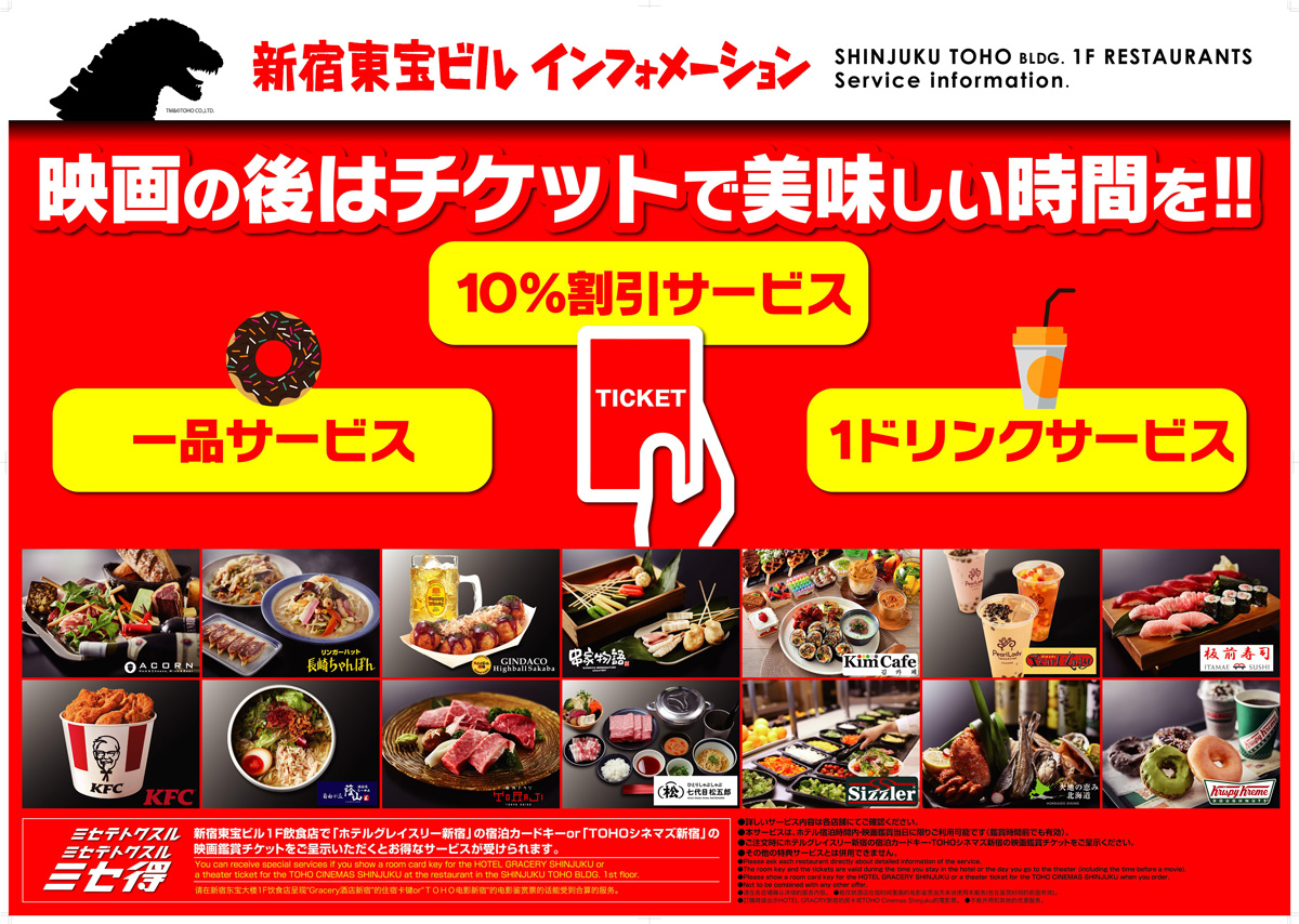 1F シズラー新宿東宝ビル店ホテル グレイスリー 新宿 公式サイト 新宿のホテルはホテルグレイスリー新宿。新宿駅東口より徒歩5分、新宿 東口のランドマークとなる新宿東宝ビルに970室、30階の高層ホテル。- 公式サイト。