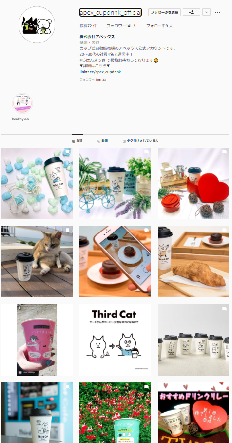 告知 公式インスタグラム 運用中!ニュース自動販売機の設置から運営管理までトータルサポートのアペックス。