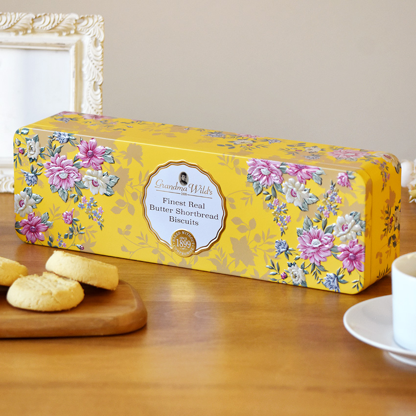 フローラル缶 グランマワイルズ クッキー ティン缶入り お菓子 缶入り 花柄 ビスケット クッキー缶 塩キャラメル ショートブレッド イギリス ギフトFD691。