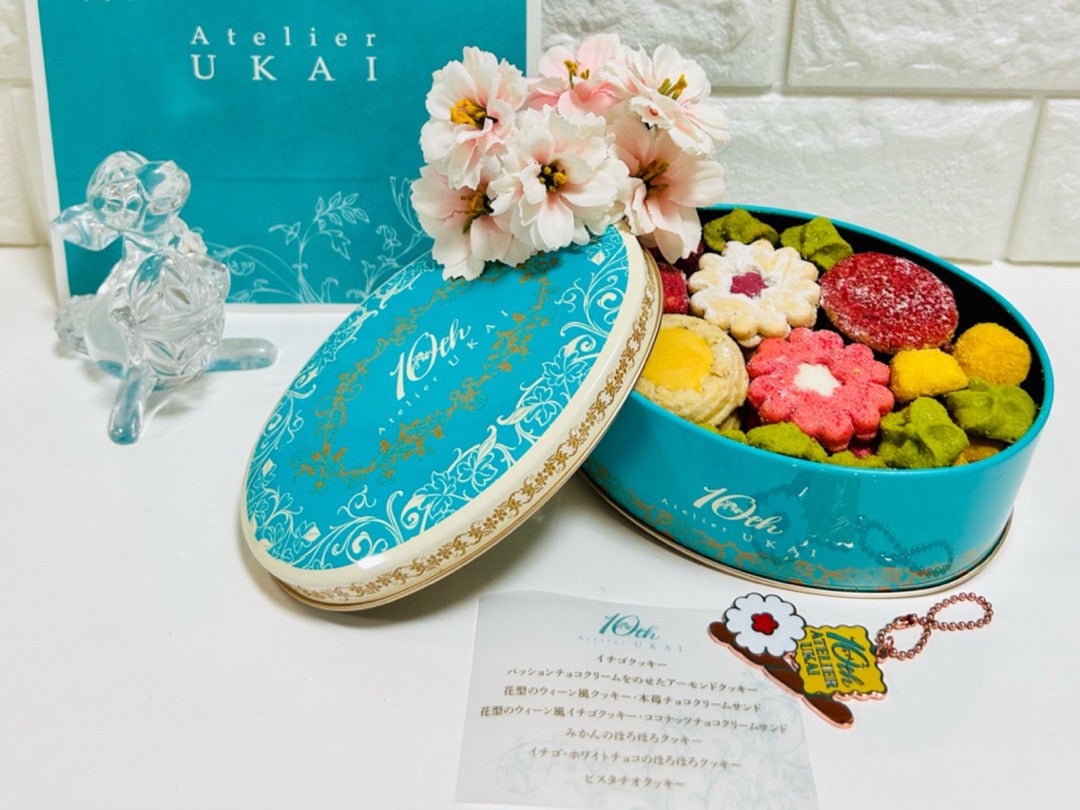 お花畑みたい‼️果実感たっぷりの華やかな10周年記念クッキー缶 アトリエうかい幸せ時間お出かけ日和 可愛いお菓子や美味しいご飯をご紹介。