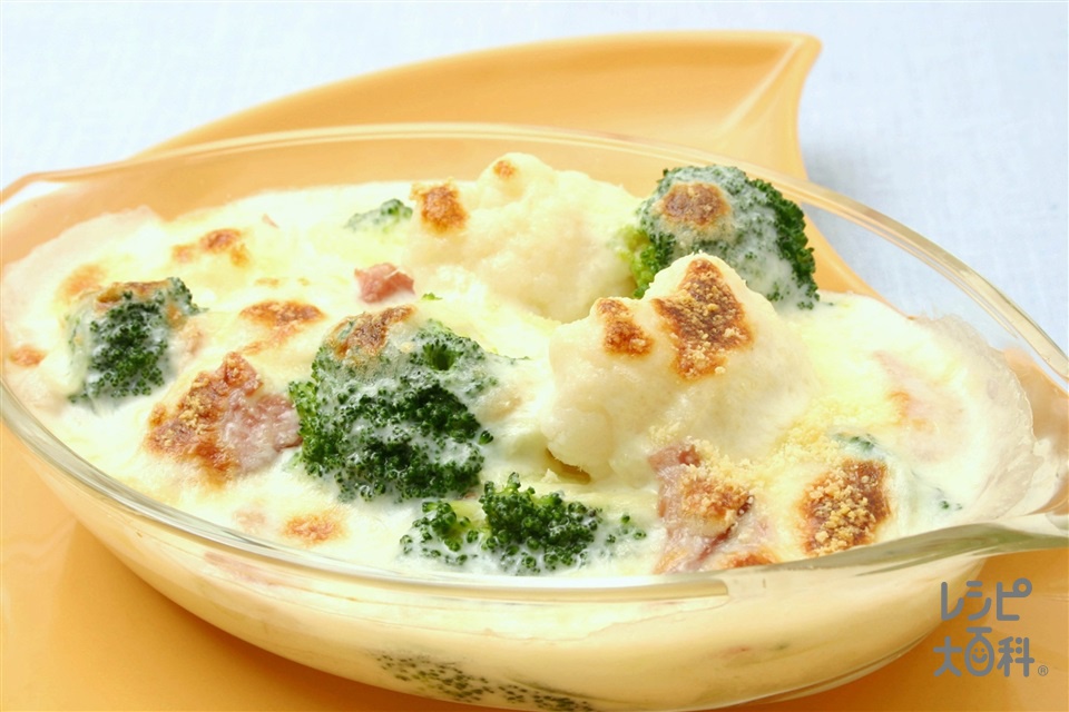 「キューピー3分クッキング」カリフラワーと生ハムのグラタン。