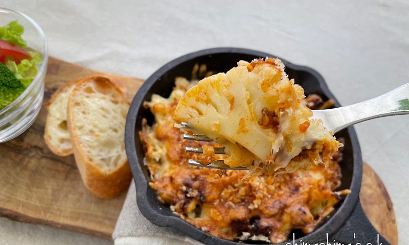 手が止まらない美味しさ 「カリフラワーのマヨカレーグラタン」。