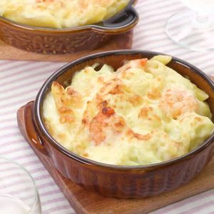 カリフラワーと海老のマカロニグラタン。
