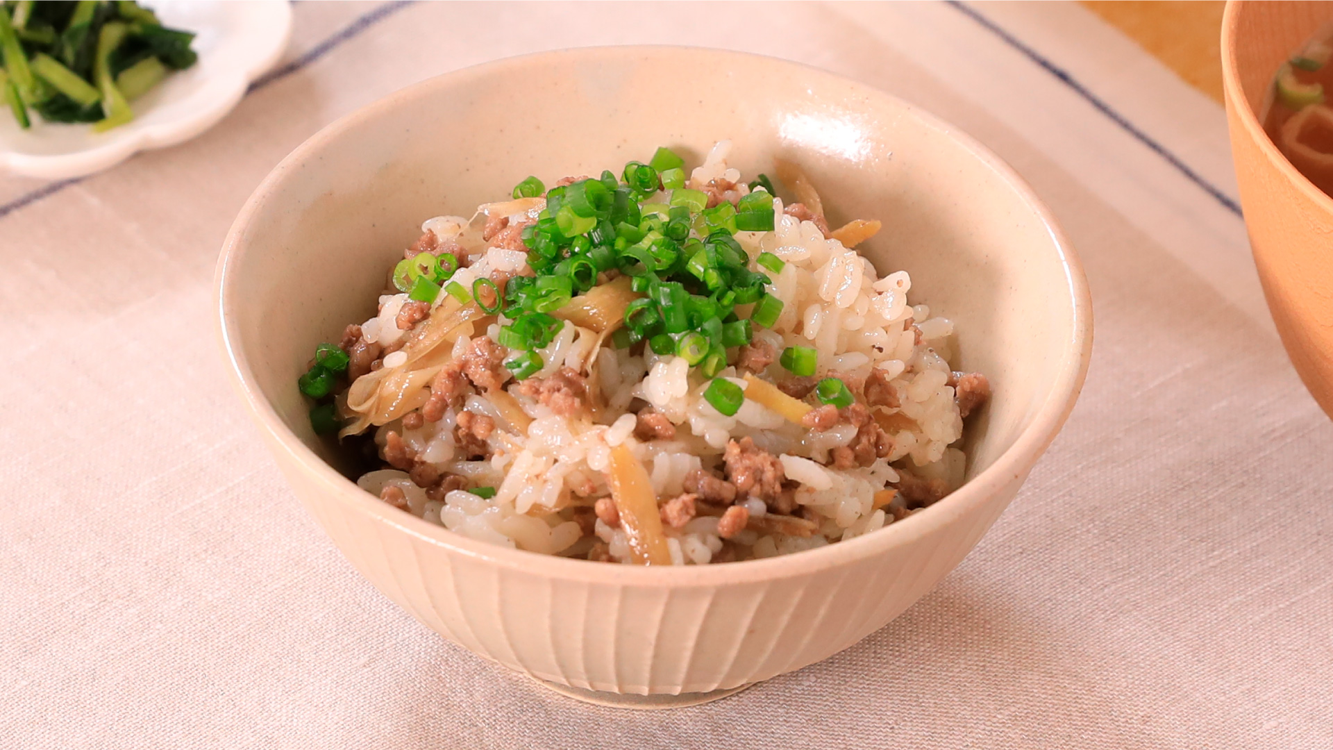 めんつゆで簡単!挽肉とごぼうの混ぜご飯 - おすすめレシピダイエー食の情報。