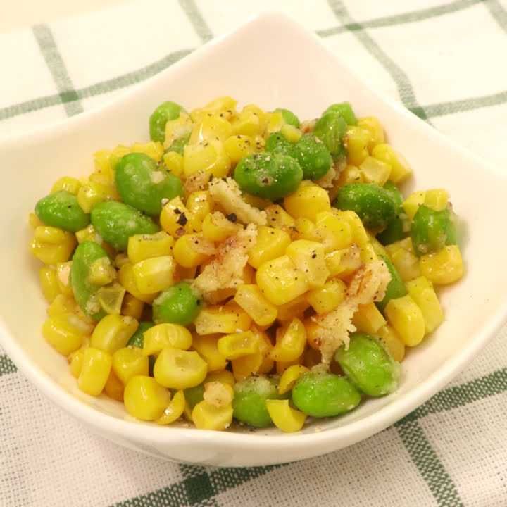 簡単レシピ! とうもろこしと枝豆のチーズ炒め。