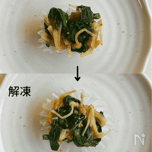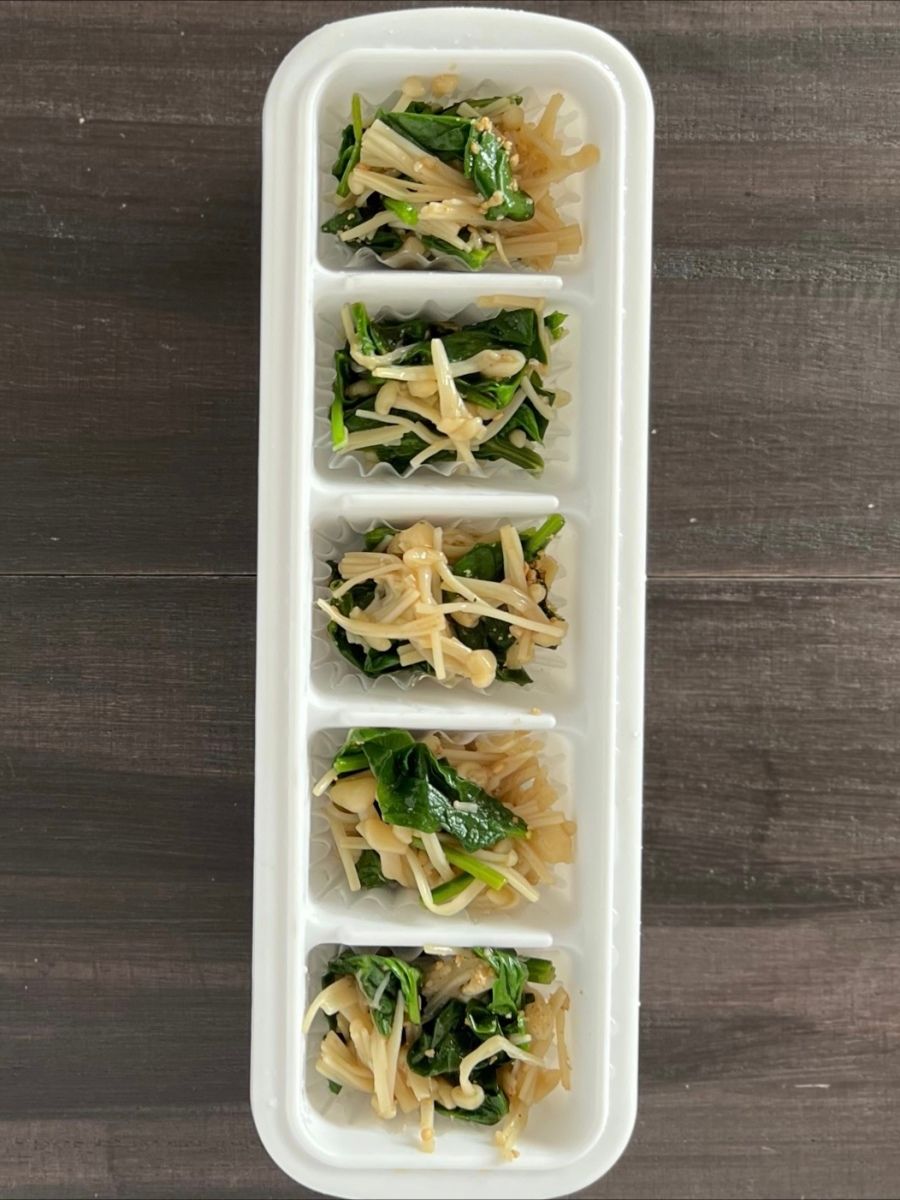 冷凍おかず レンジで簡単!ほうれん草とえのきのごま和え。