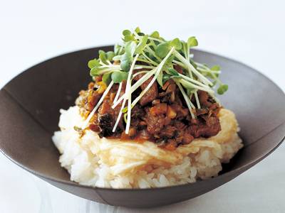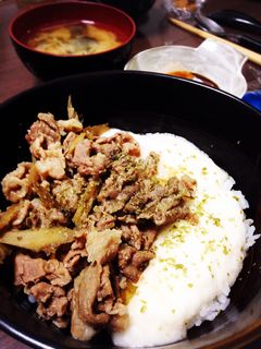高菜と牛肉のとろろ丼。