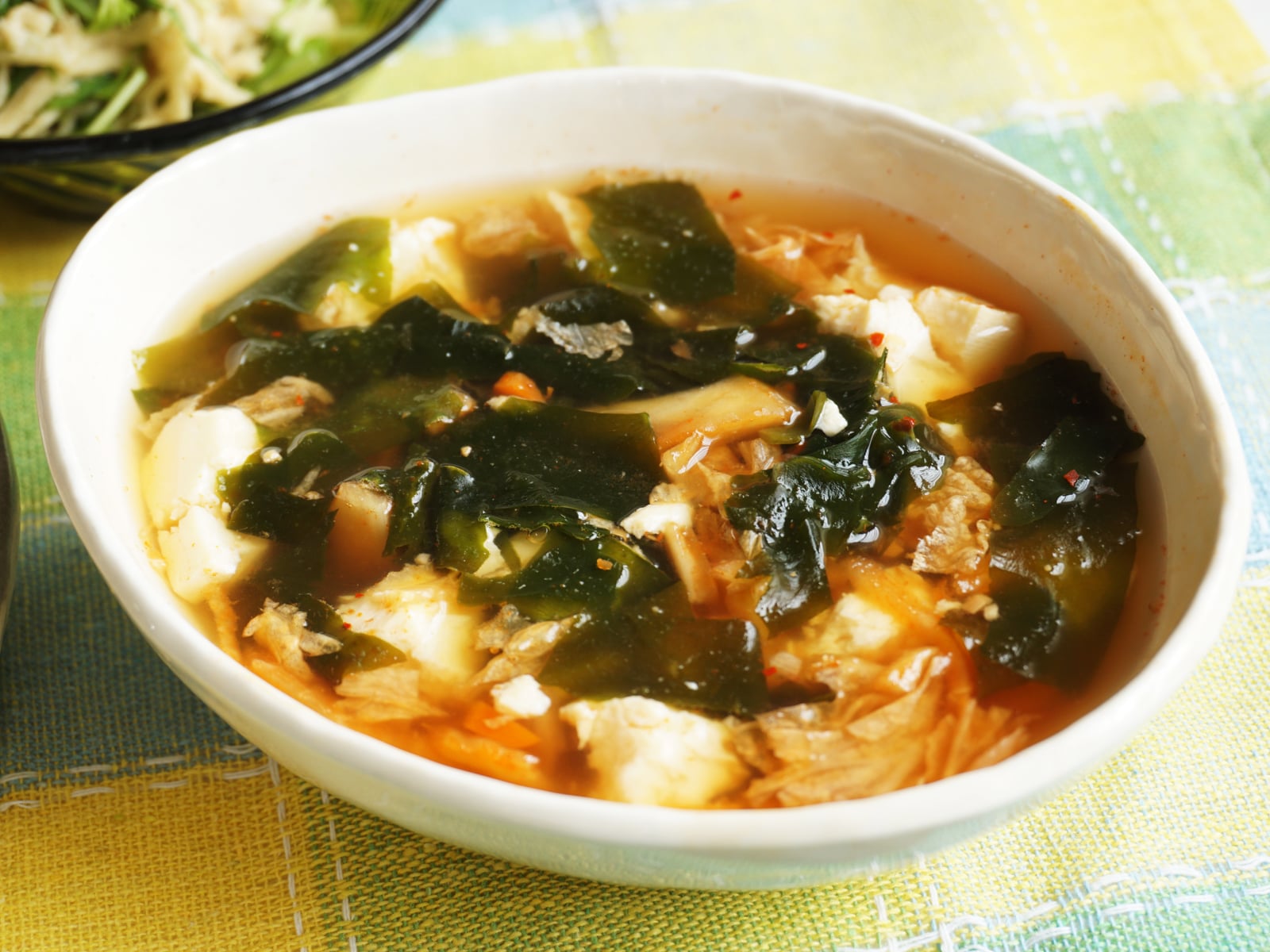 キムチと豆腐とわかめのスープ☆。