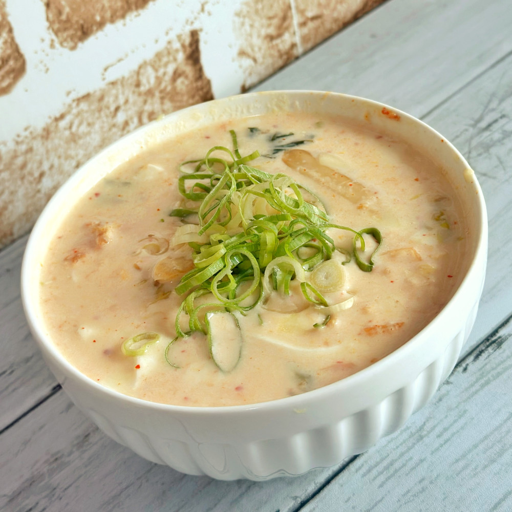 お腹スッキリ!豆腐とキムチのヘルシー豆乳スープ レシピ・作り方ヘルシート。