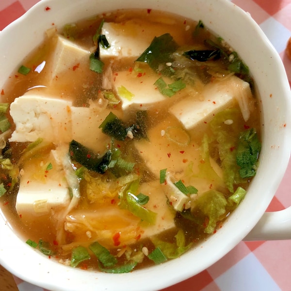 レンジで5分!豆腐キムチスープ。
