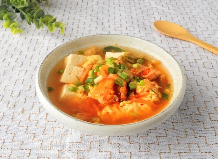 キムチと豆腐のピリ辛スープ。