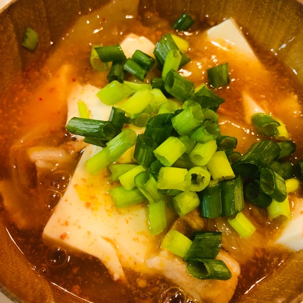 『豆腐と豚肉のピリ辛キムチスープ』炒めて煮るだけ♪簡単☆。