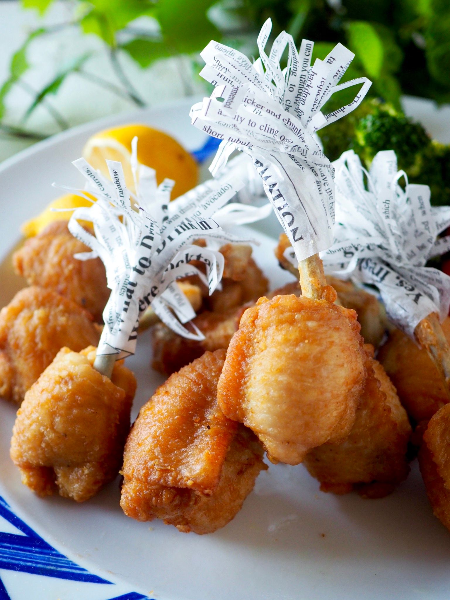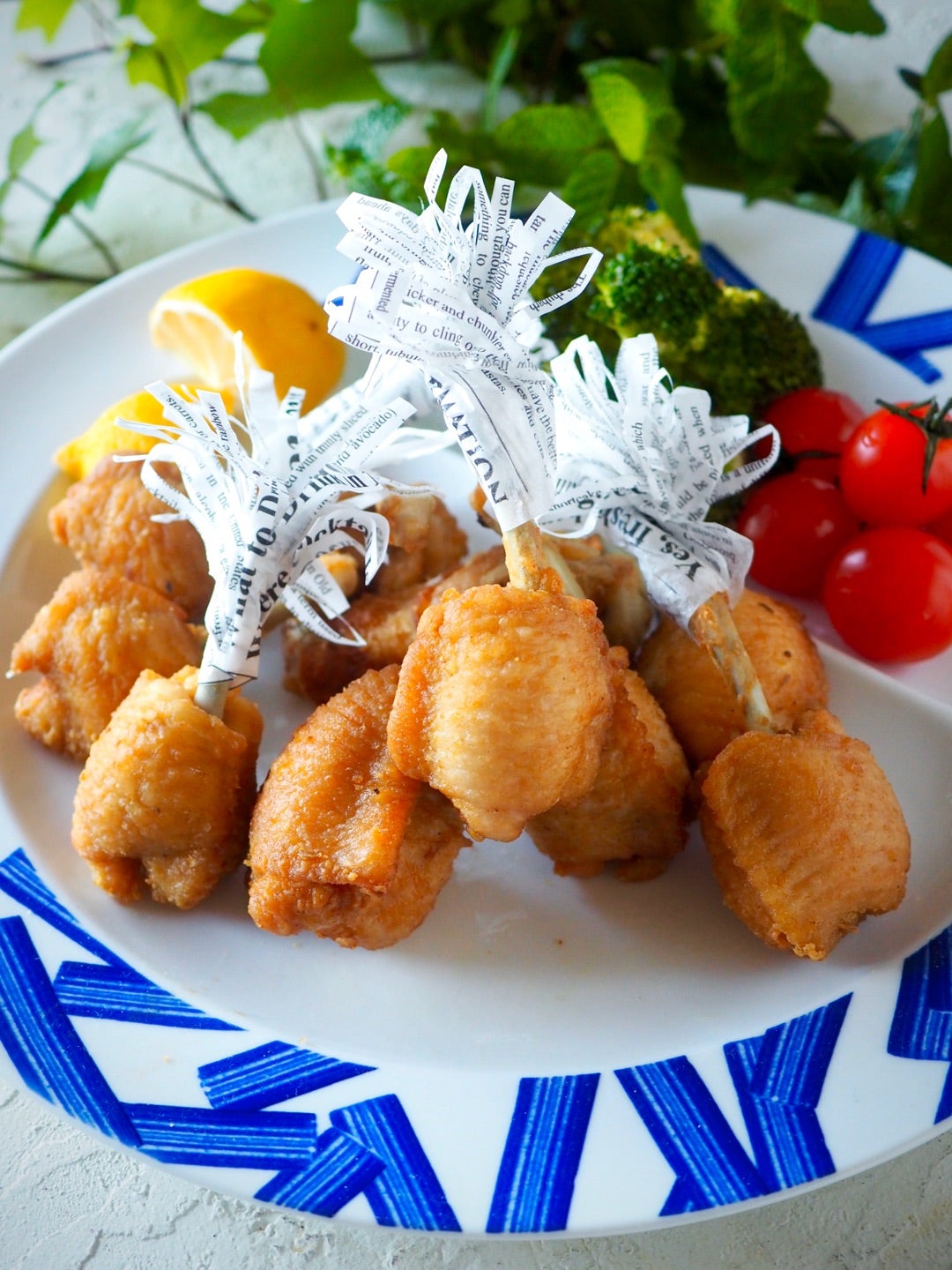 鶏手羽元で生姜香るチューリップ唐揚げ。