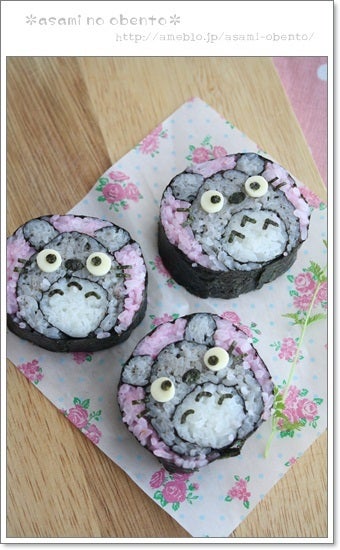 かわいいトトロの巻き寿司レシピジブリキャラの料理アイデア。