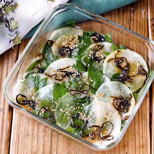 白菜と大葉の甘酢和え。