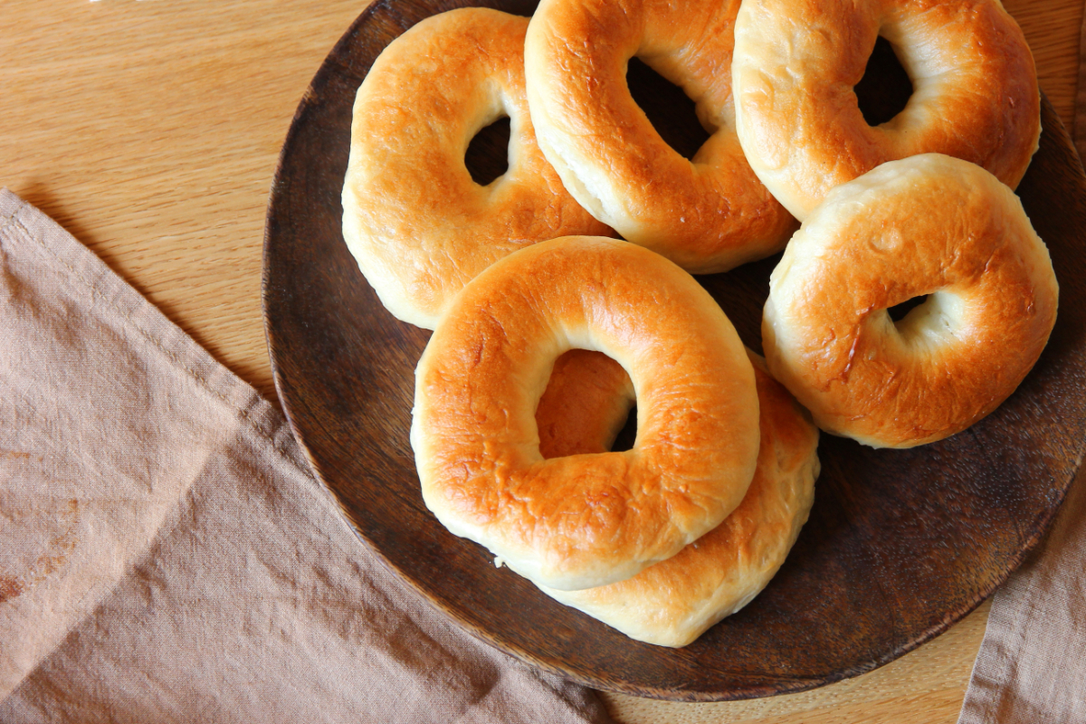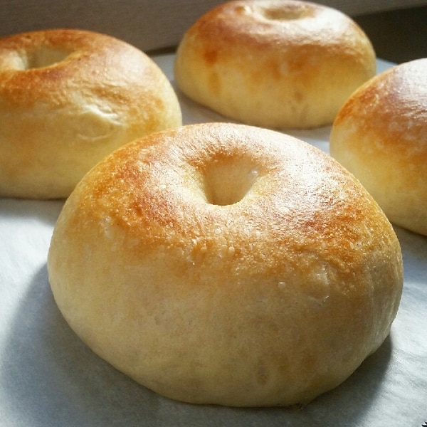 ホームベーカリーでカリっともちもちベーグル!手ごねでも◎。