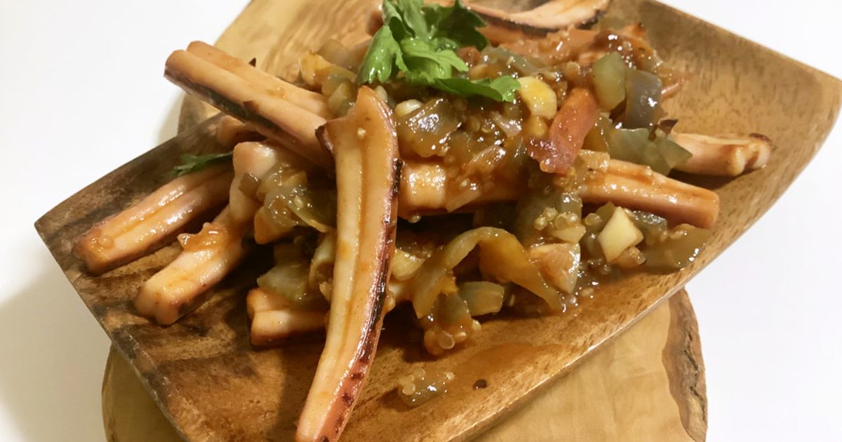 夏にぴったりのスペイン料理“いかの詰め物トマトソース煮”。