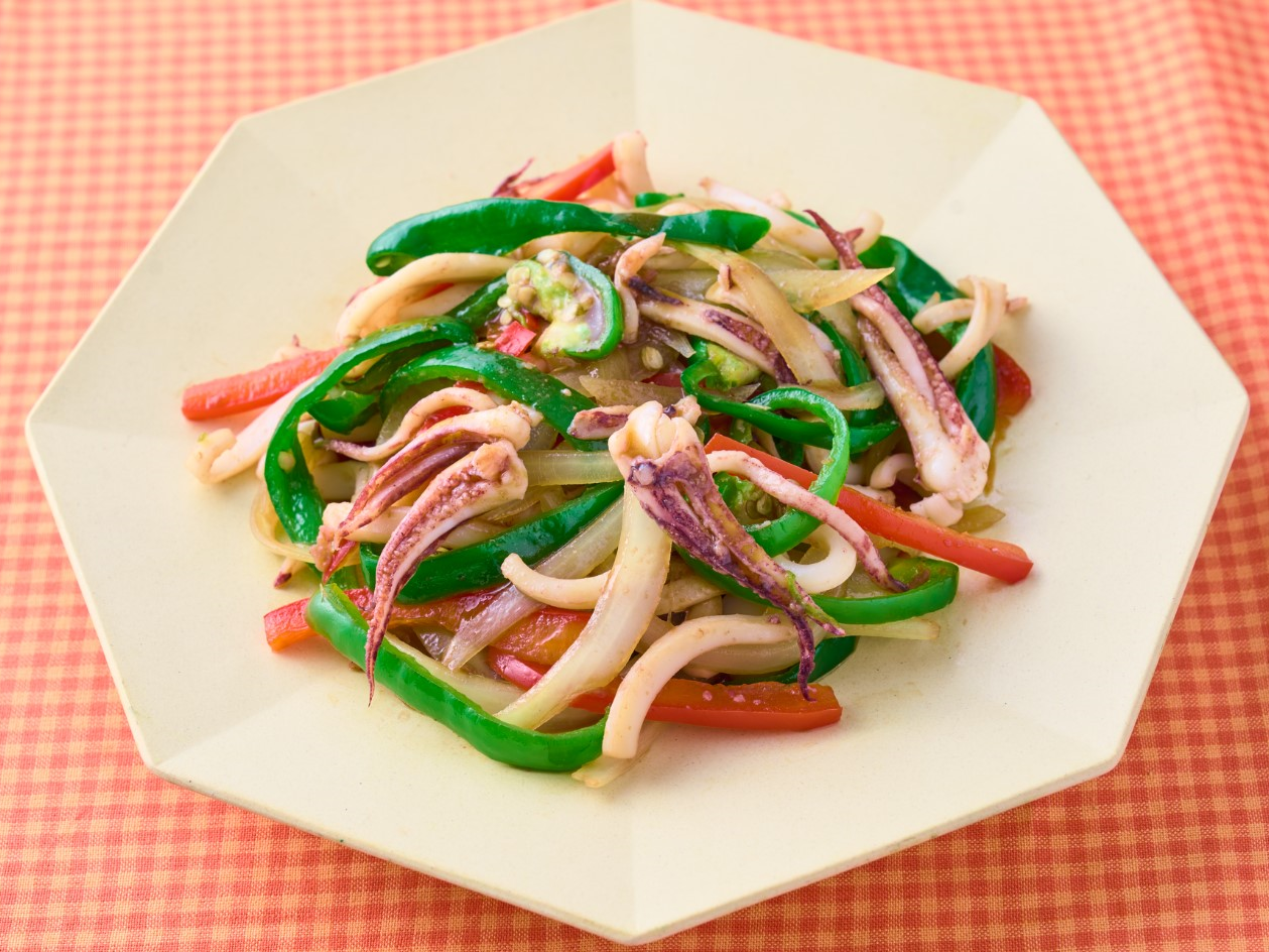 「おかずのクッキング」イカと赤パプリカの塩炒め。