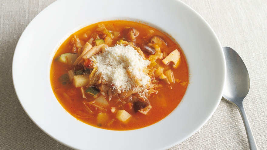 たっぷり野菜の和風ミネストローネのレシピ作り方:白ごはん.com。