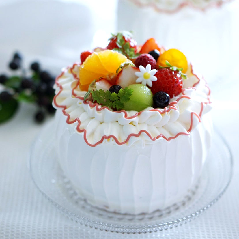 フリル絞り,生クリーム絞りひらり,デコレーションケーキ,絞り生クリーム。