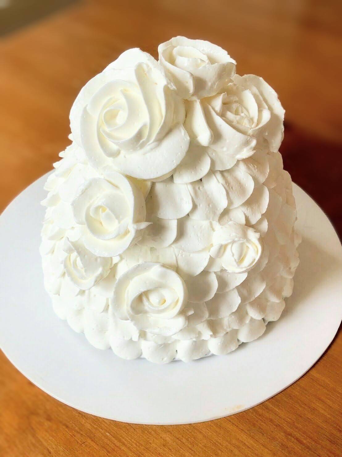 バラ口金・フリル絞り 側面・ループを描く 2段ケーキ@tsukiemizuho。