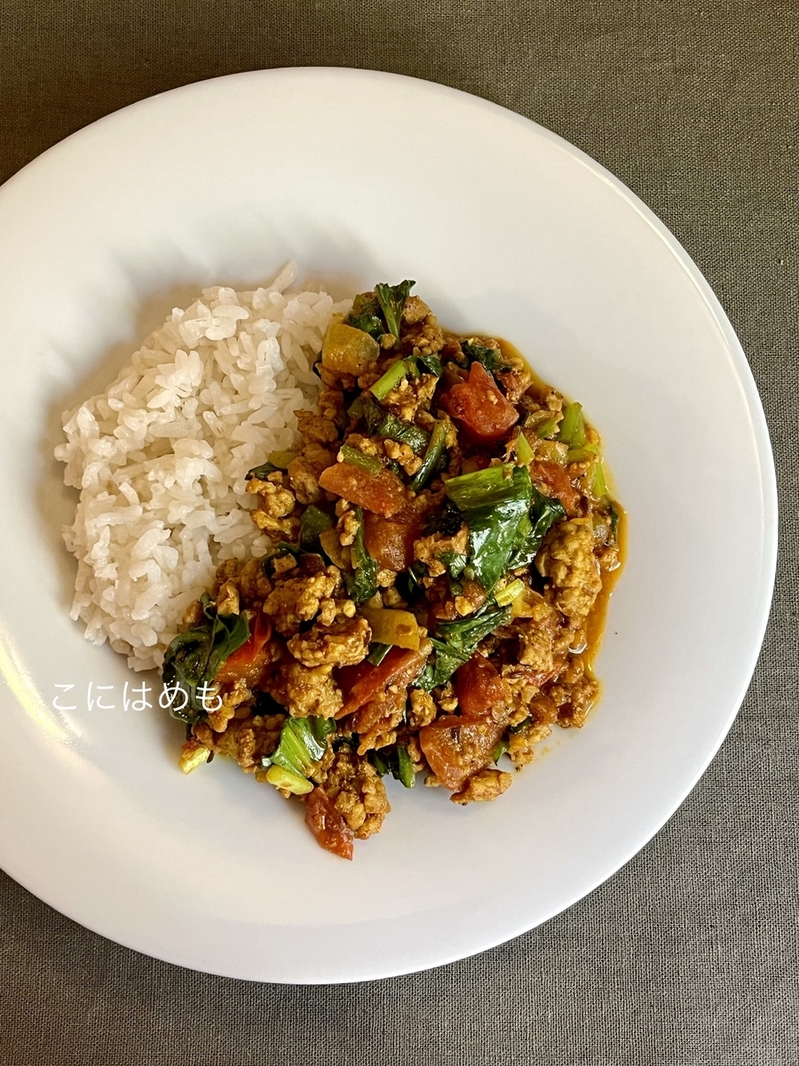 フライパンを使って30分で作る!「行者ニンニクと豚ひき肉のスパイスカレー」作り方・レシピ。 - こにはめも。