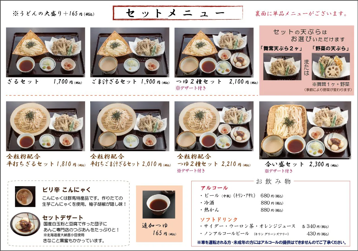 メニュー : 元祖 水沢うどん 麺彩房 田丸屋 - 渋川市伊香保町水沢 うどん店Yahoo!マップ。