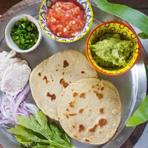ひよこ豆たっぷりのチリコンカンを乗せた、手作りトルティーヤレシピ。