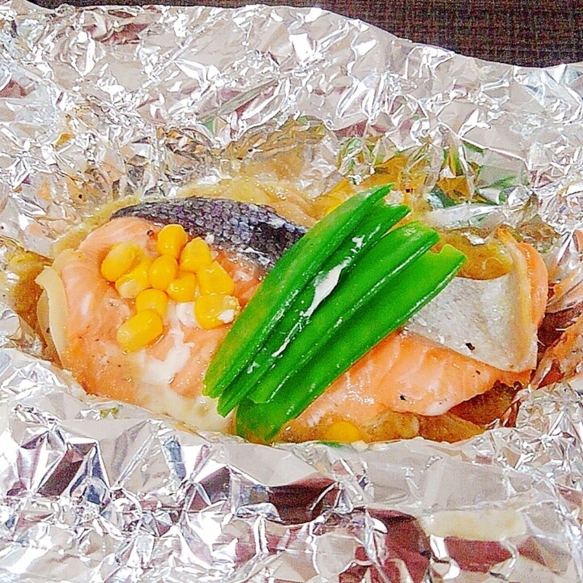 焼くだけ簡単夕飯!バター香る、鮭のホイル焼き♪。