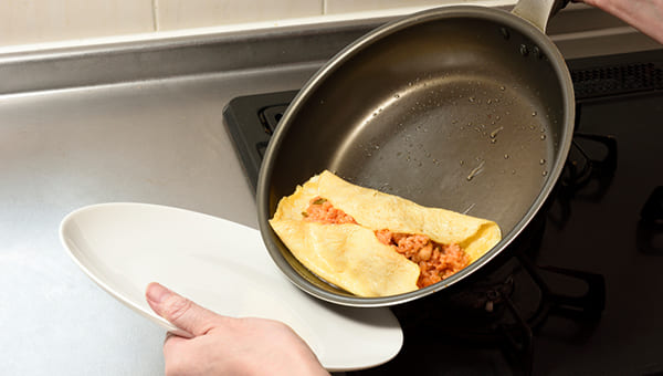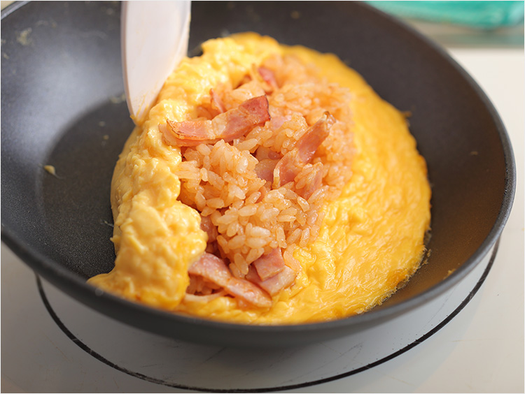 きれいな形に包むコツ!オムライスの基本レシピ。