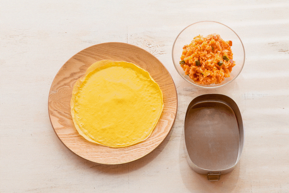 お弁当用オムライスの包み方。
