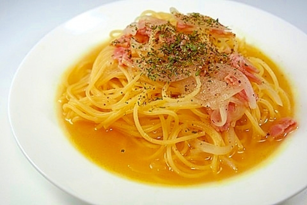 簡単、うまい!節約コンソメスープスパゲッティ。