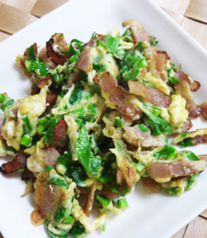 イタリアンパセリ大量消費レシピ①♪ベーコン卵炒め。