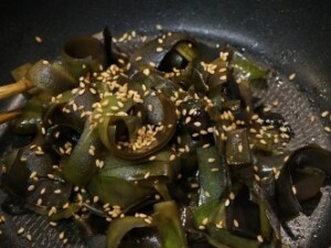 「土曜はナニする」ナスの皮のキンピラ。