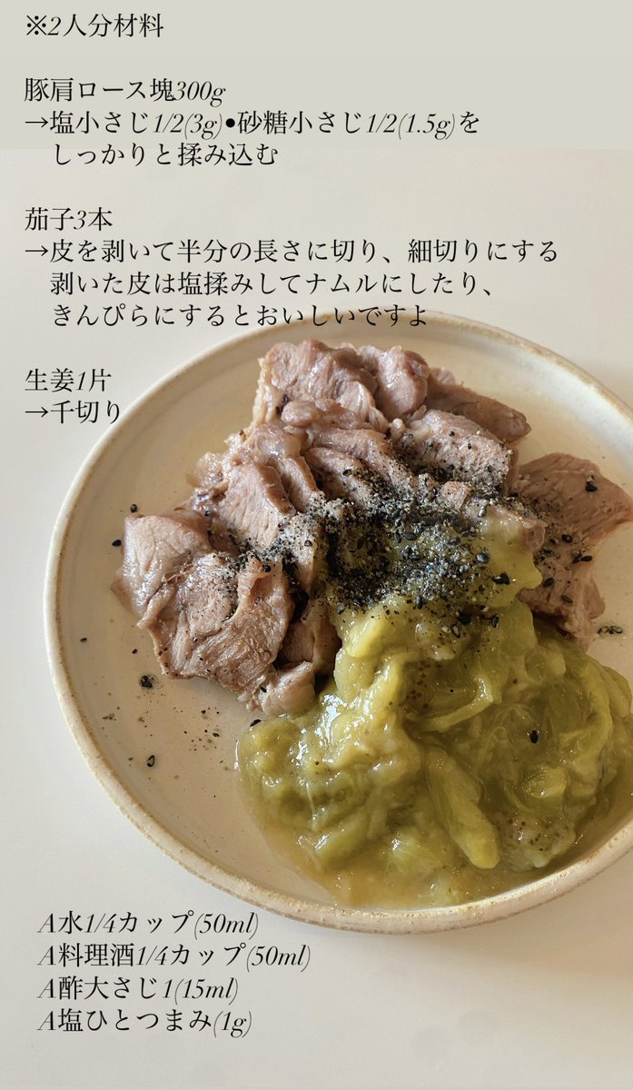 長谷川あかり on X: "甘くとろける旬の茄子。小さく切った鶏肉 と一緒にノンオイルで蒸し煮にしてみたら、とってもおいしい一皿が完成しました。酒蒸しにして下味を含ませてからお醤油をほんの少し絡めることで茄子の甘さがより引き立ちます。この先ずっと作り続けたい。