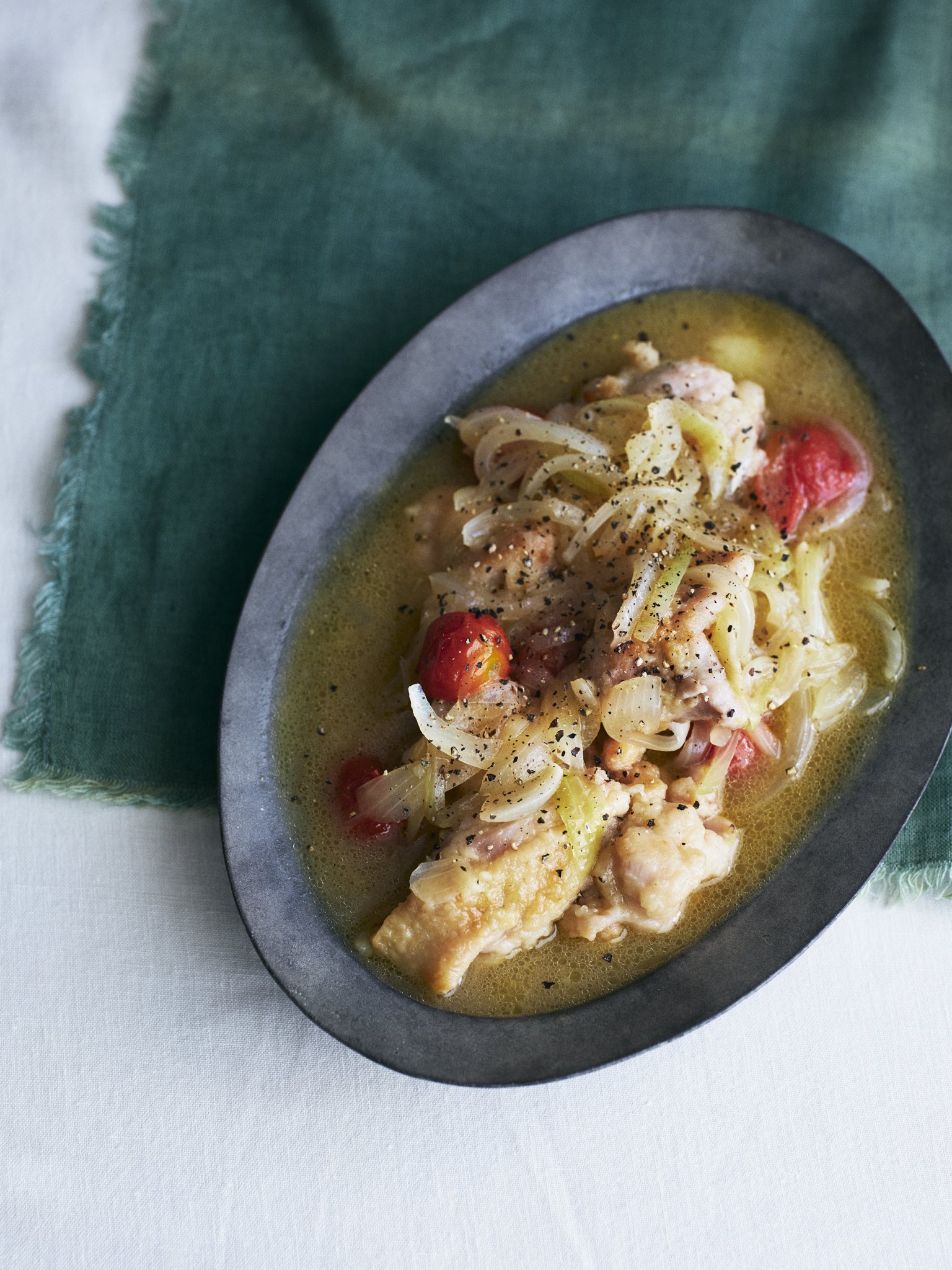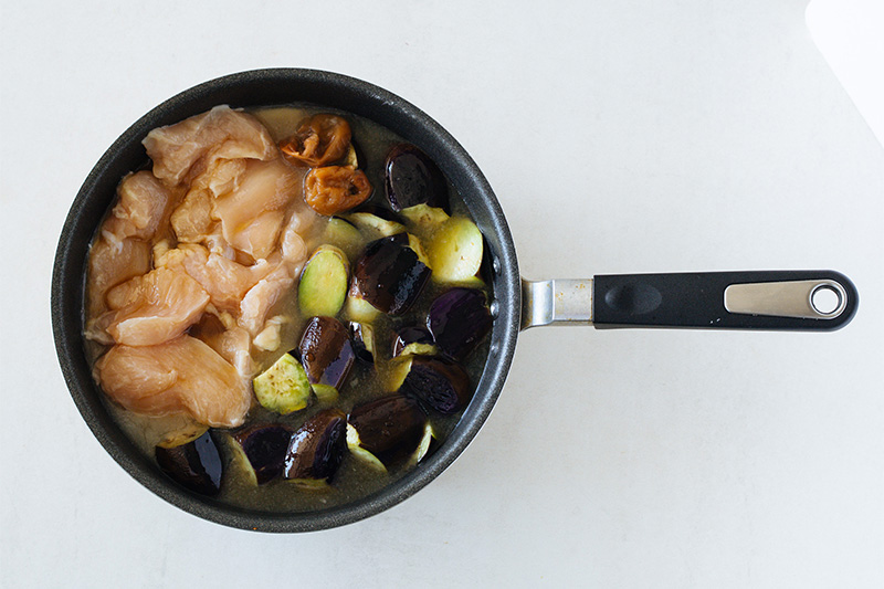 鶏むね肉とナスの梅ニンニクカブおろし」のつくり方。疲れた日のごはんに、フライパンひとつの軽い煮込み 長谷川あかりさんの、つくりたくなる日々レシピ。